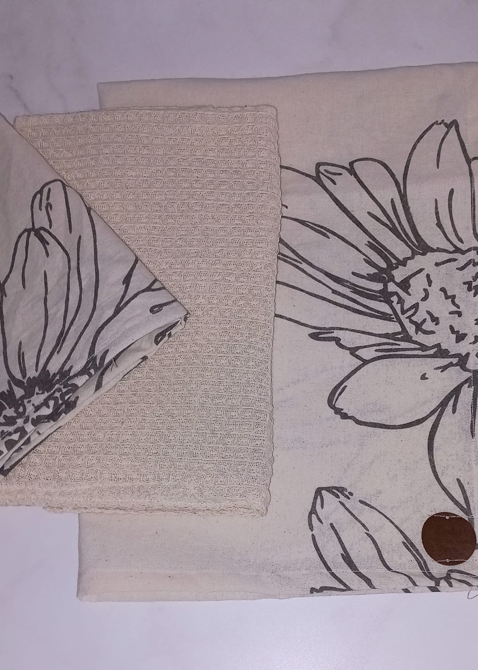 Set compuesto por 2 repasadores o paños de cocina: uno en tussor y uno en nido de abeja (waffle)