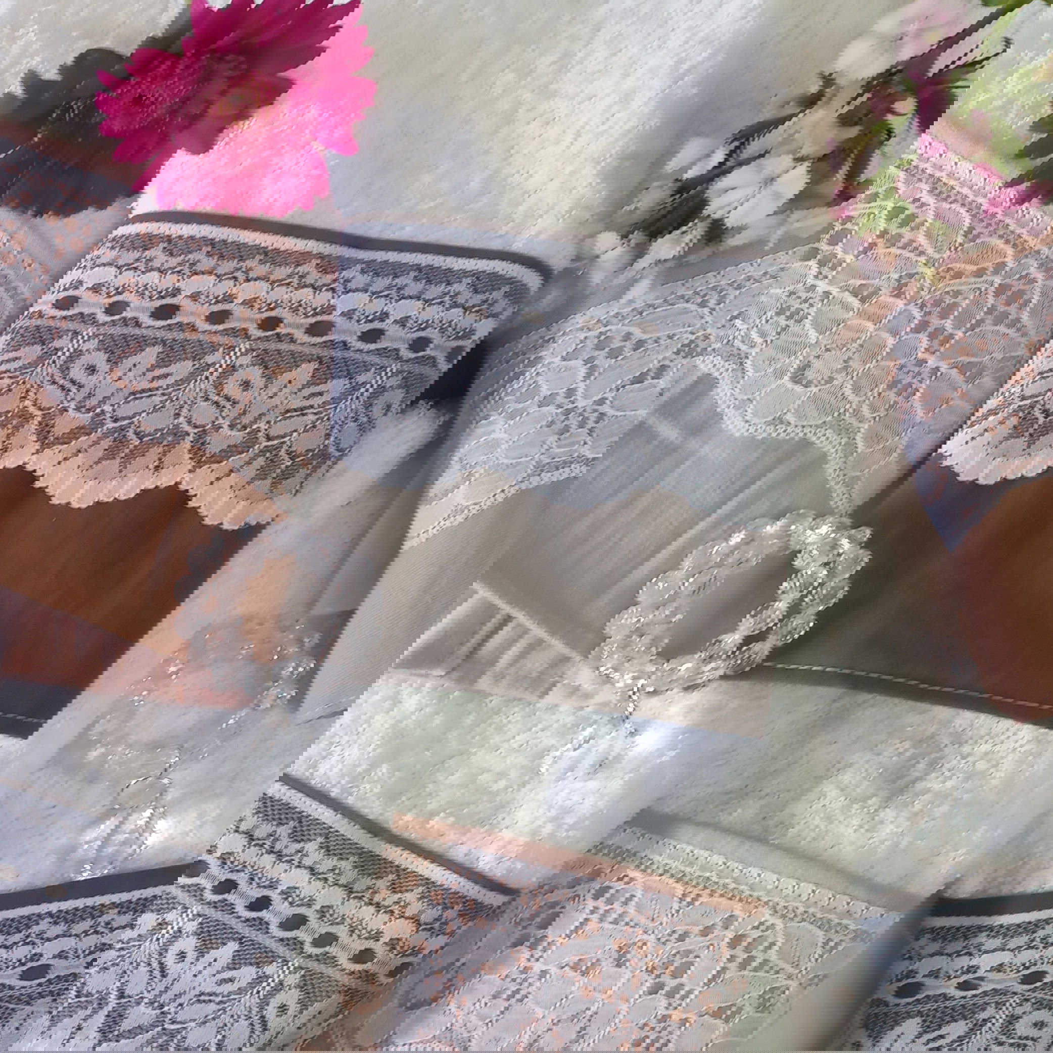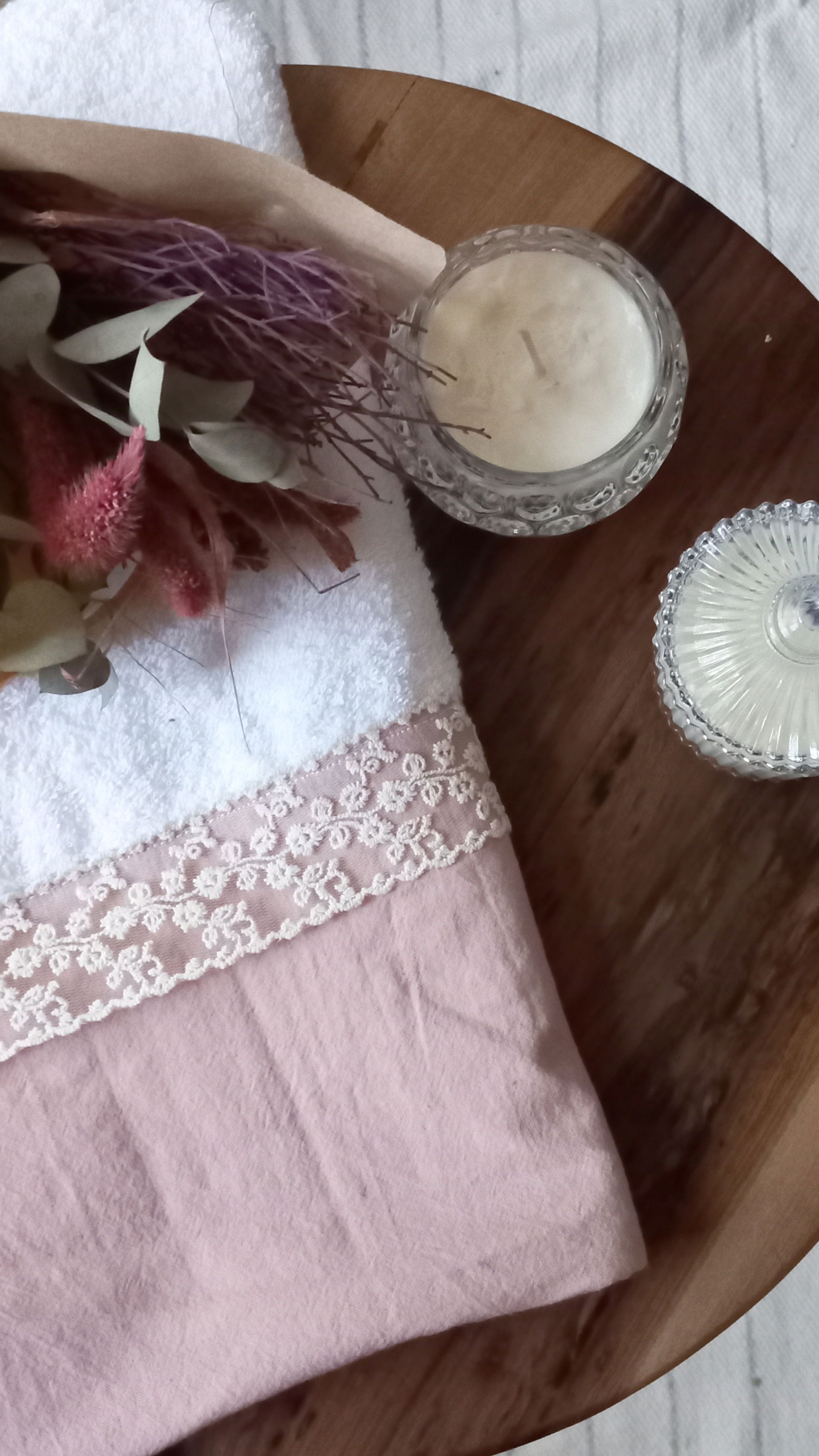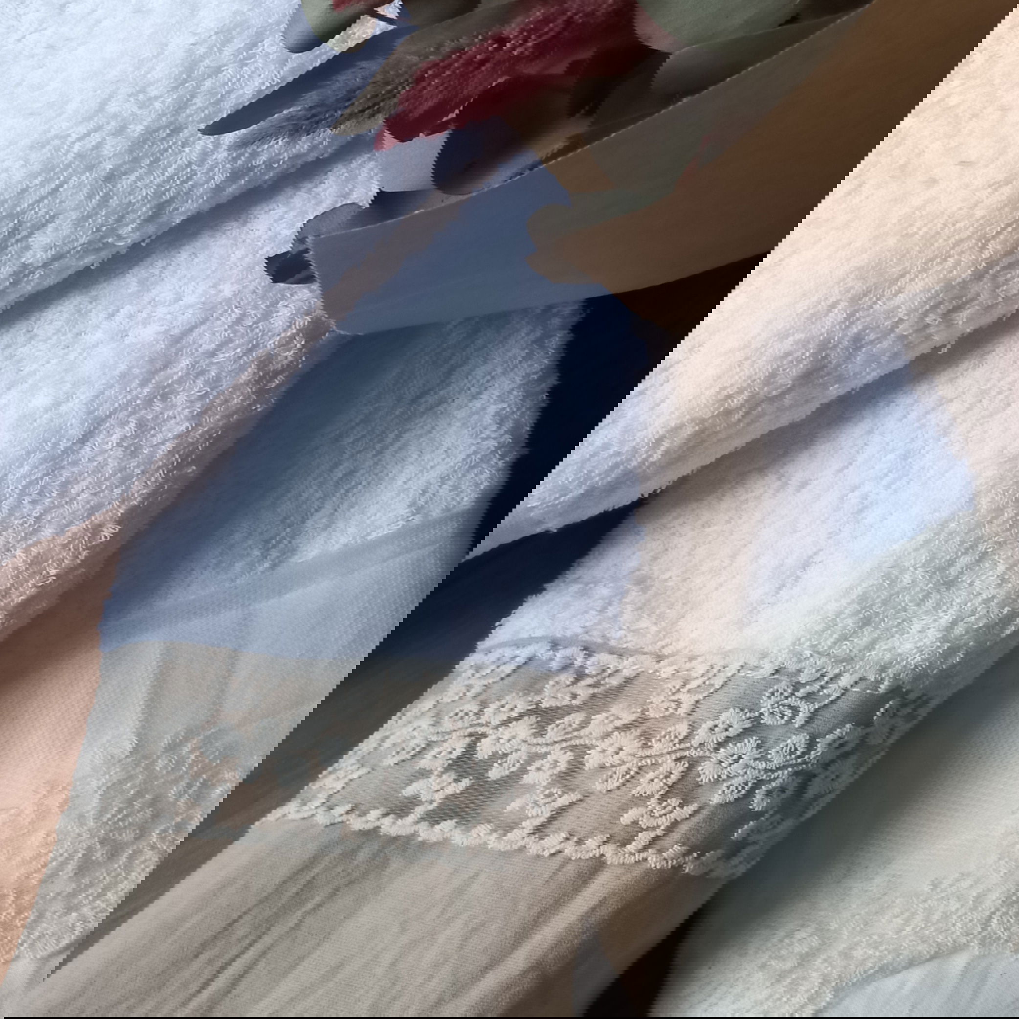 Toallas de visita con faldón en tussor y puntillas