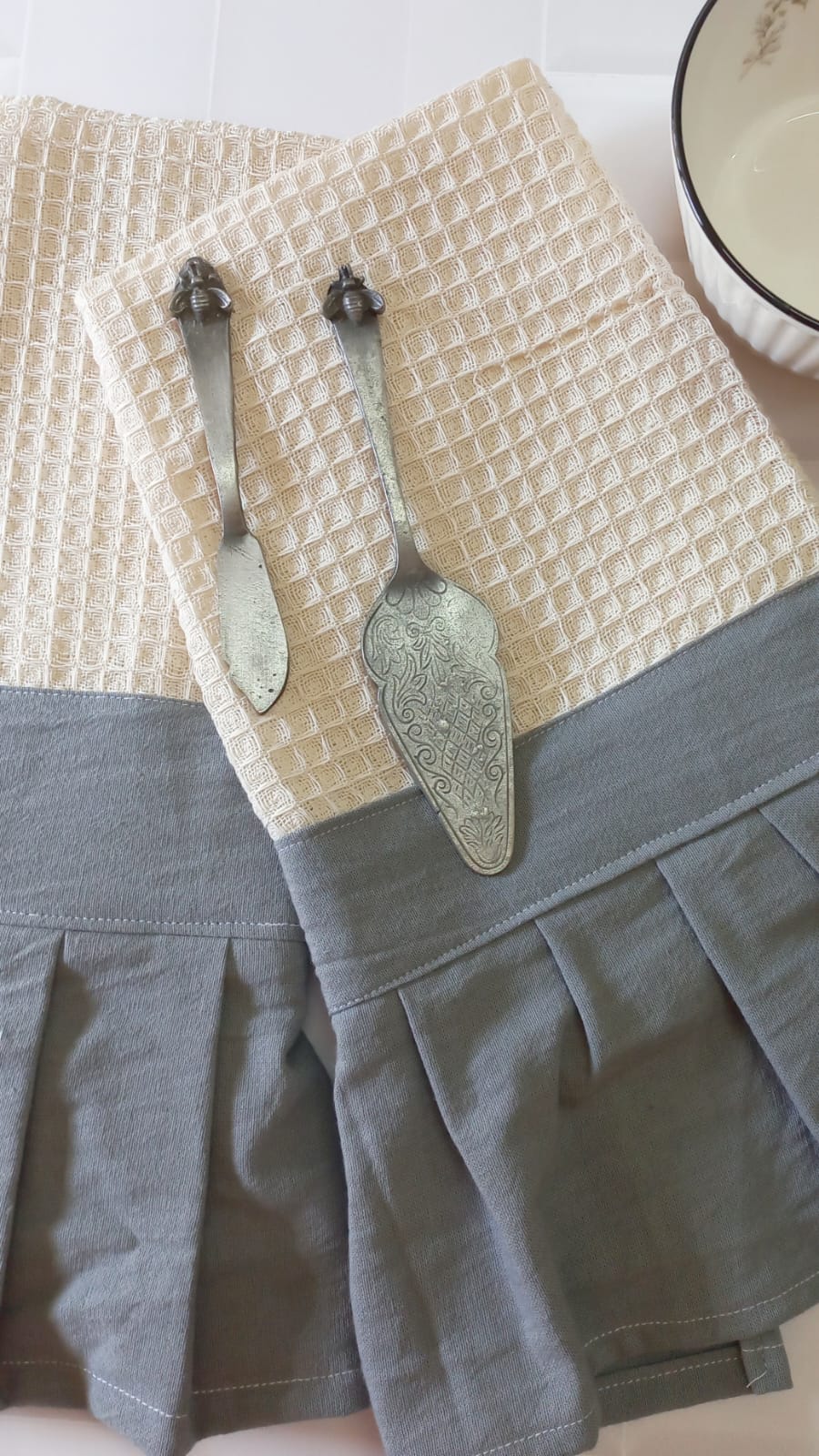 Paño de cocina en nido de abeja con volado en tussor