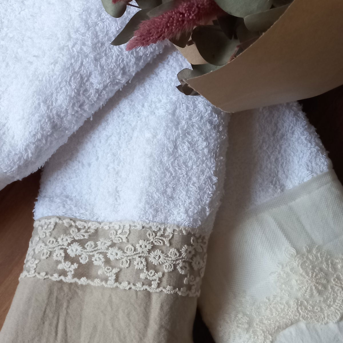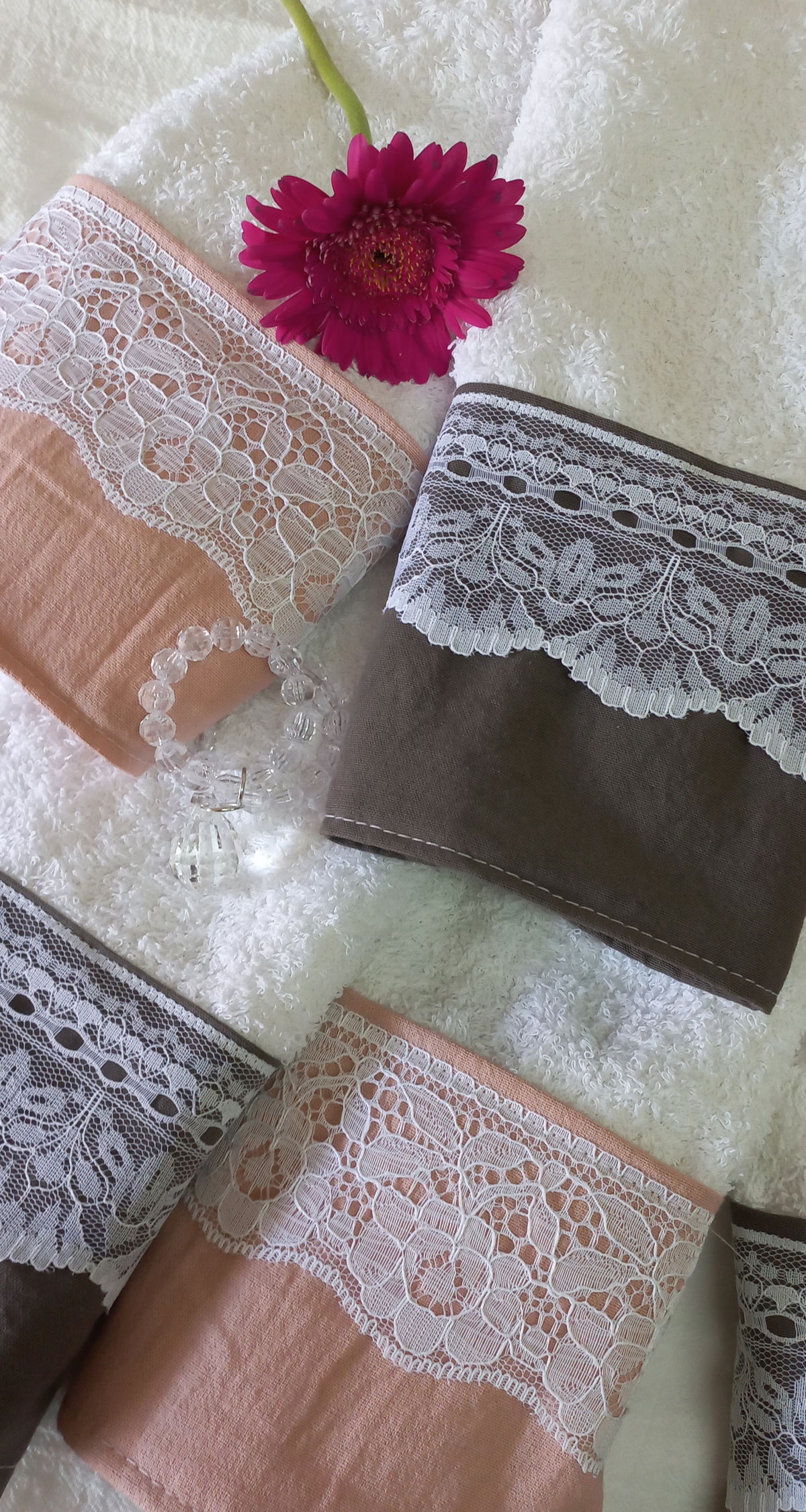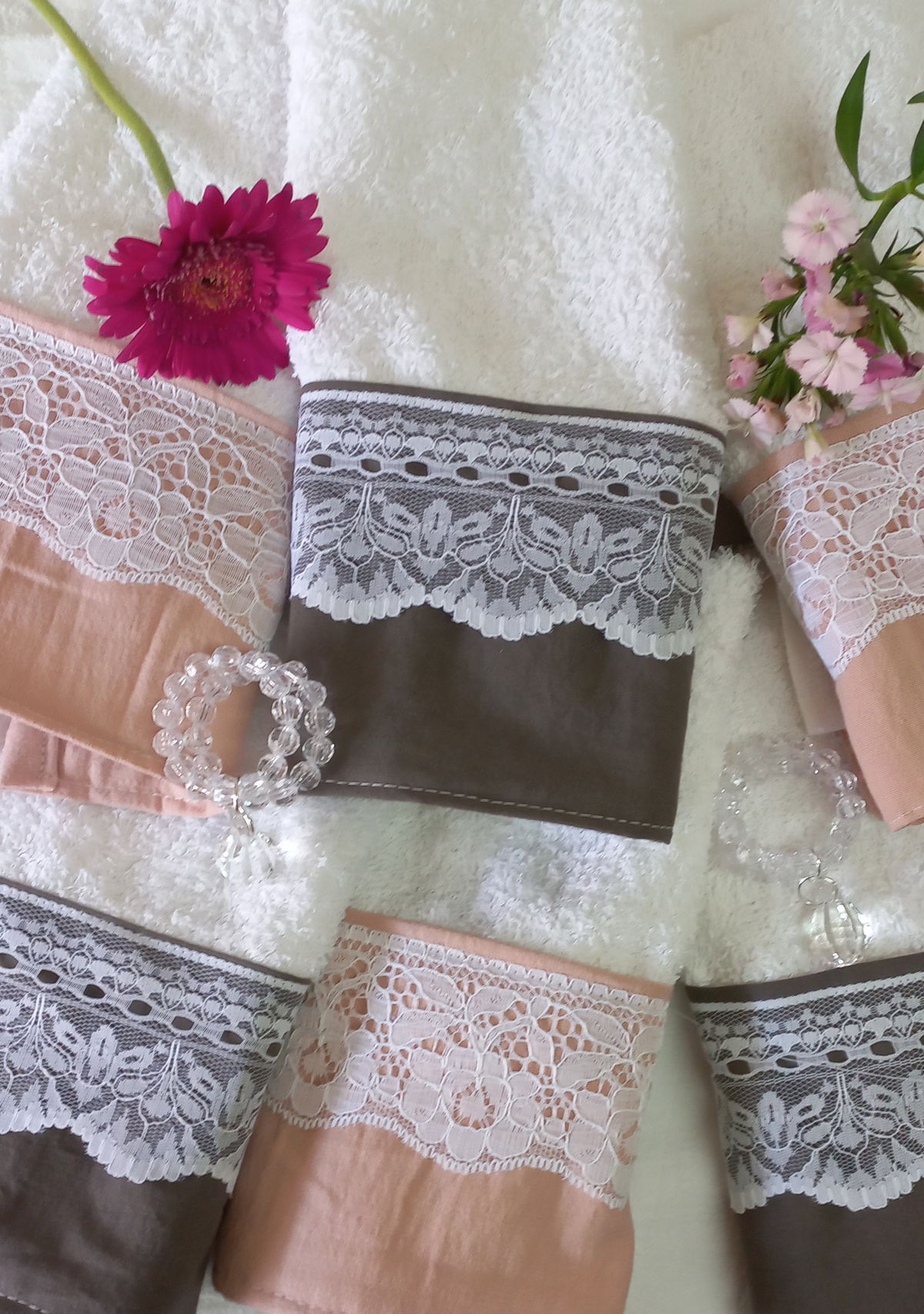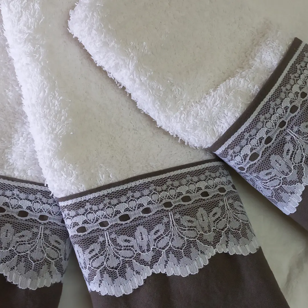 Toallas de visita con faldón en tussor y puntillas