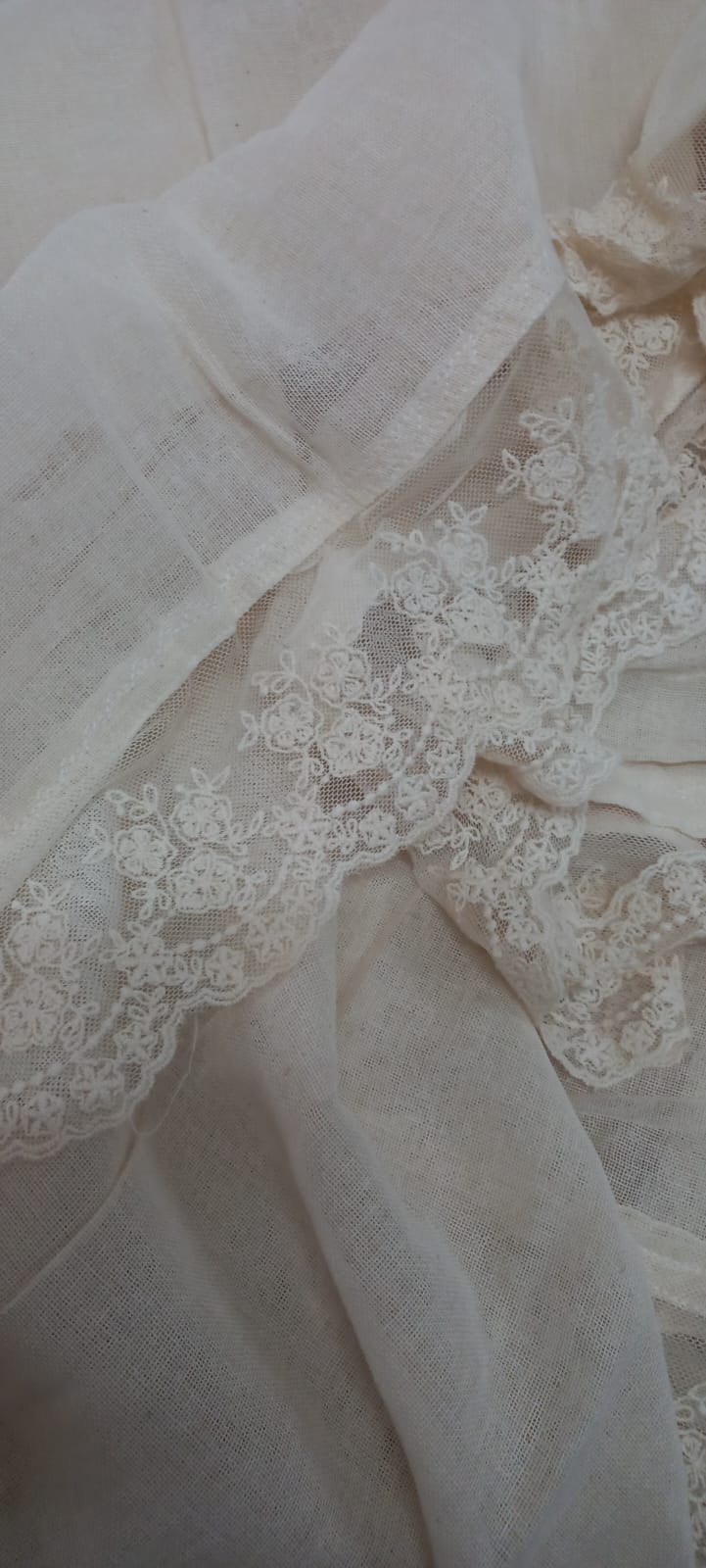 Mantel en gasa de algodón con puntilla bordada