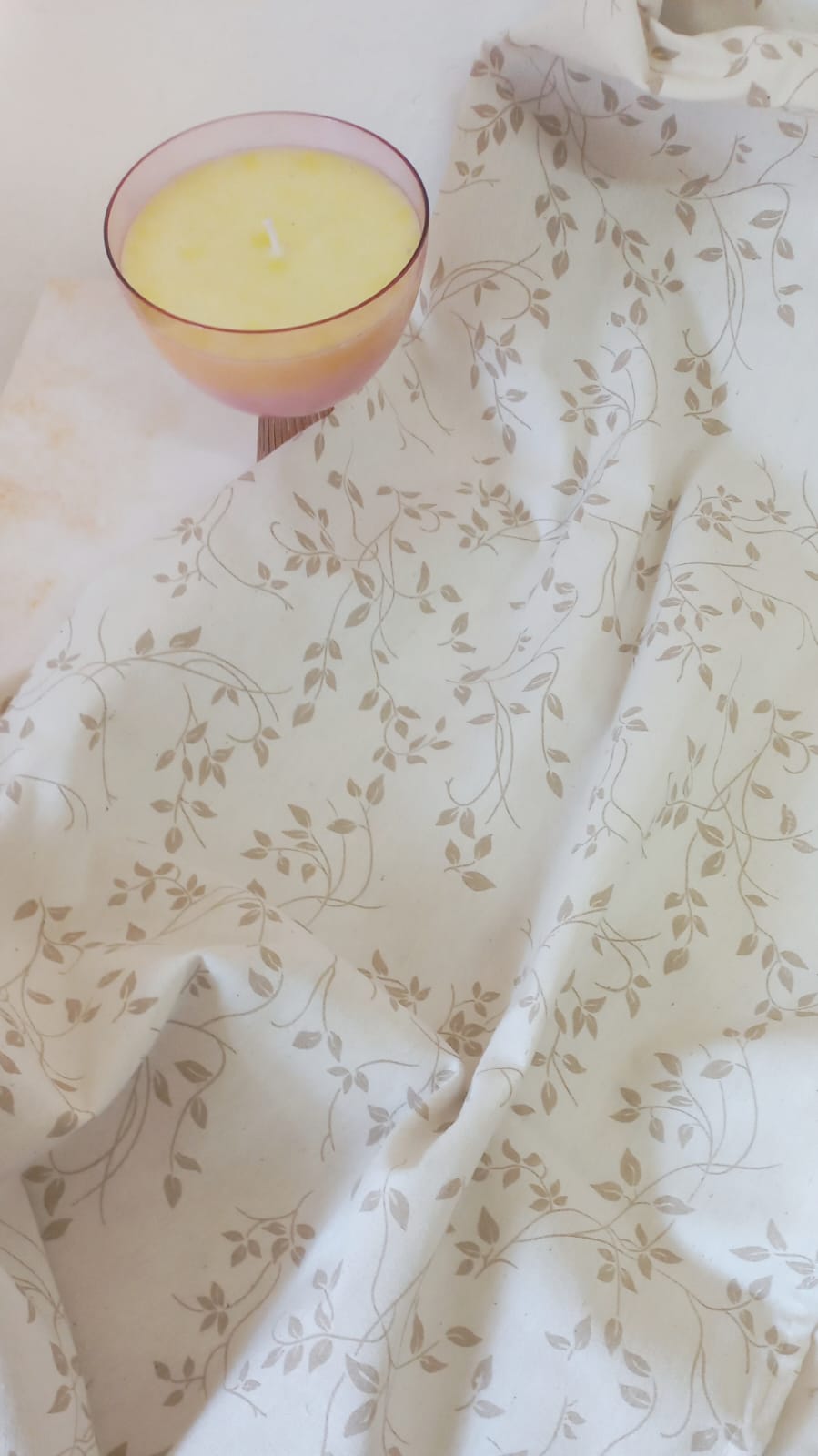 Camino de mesa en tussor color beige con hojas y ramas en color avellana